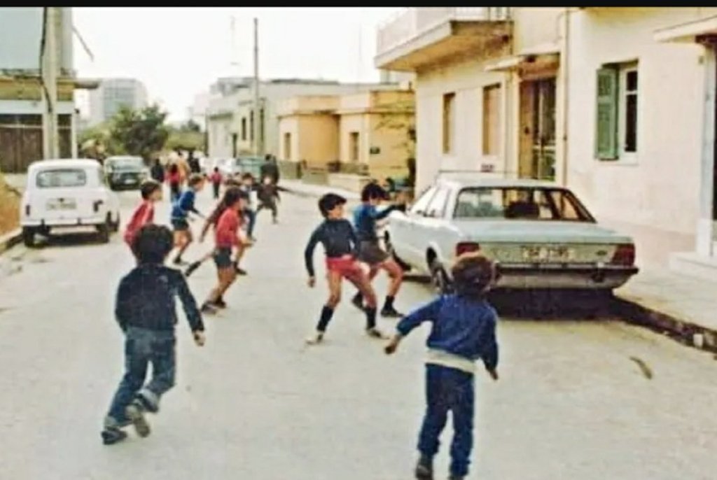 Εμείς, θα παίζαμε με τις ώρες μπάλα και δεν θα γυρίζαμε σπίτι αν δεν φώναζε η μάνα από το παράθυρο. Θα παίζαμε πετροπόλεμο ή μάχη με τα νεράτζια μέχρι να την πληρώσει το παράθυρο του γείτονα. Θα πηγαίναμε να εξερευνήσουμε τον μικρό λόφο που τότε έμοιαζε θεόρατο βουνό. Θα καθόμασταν με τις ώρες να χαζεύουμε τα μεγαλύτερα παιδιά που αγόραζαν το πρώτο τους «παπί», τρύπαγαν την εξάτμιση και έκαναν περατζάδες από την πλατεία, σπάζοντας τα νεύρα των γιαγιάδων που μαζευόντουσαν για να πλέξουν (και να κουτσομπολεύσουν).