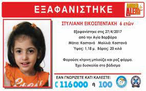 - Τραγικό θάνατο βρήκε η εξάχρονη Στέλλα Εικοσπεντάκη από τα χέρια του ίδιου της του πατέρα στην Αγία Βαρβάρα στις 28 Απριλίου 2017.