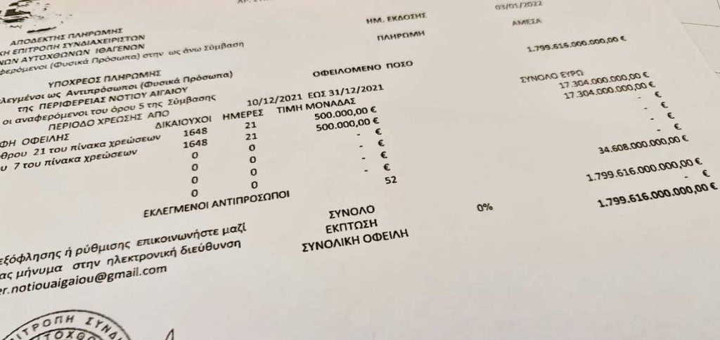 Όπως φαίνεται στο χαρτί που του έστειλαν και που δημοσίευσε ο Περιφερειάρχης, Γιώργος Χατζημάρκος στο Facebook, οι «Αυτόχθονες» του δίνουν τη δυνατότητα να προβεί σε ρύθμιση οφειλής, σε περίπτωση που η Περιφέρεια δεν έχει εύκαιρο το ποσό.