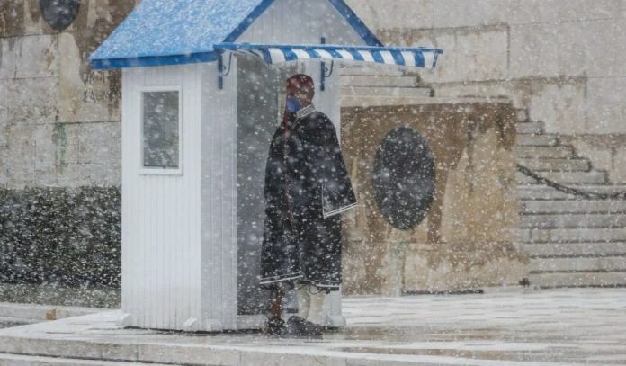 Αγέρωχοι και αμετακίνητοι οι τσολιάδες της Προεδρικής Φρουράς στην πλατεία Συντάγματος. Κι ας λυσσομανάει η κακοκαιρία με το, μάλλον ατυχές, όνομα «Ελπίδα». Κι ας είναι το κρύο τσουχτερό. Αυτοί εκεί, με καμαρωτή κορμοστασιά και ίσιο βλέμμα.