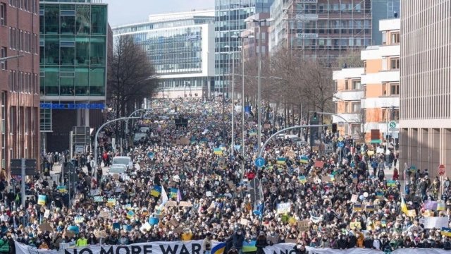 Με συνθήματα όπως «κάθε ζωή μετράει», «σταματήστε τον πόλεμο» και «στηρίζουμε την Ουκρανία», οι μαθητές συγκεντρώθηκαν στο κέντρο του Βερολίνου και του Αμβούργου