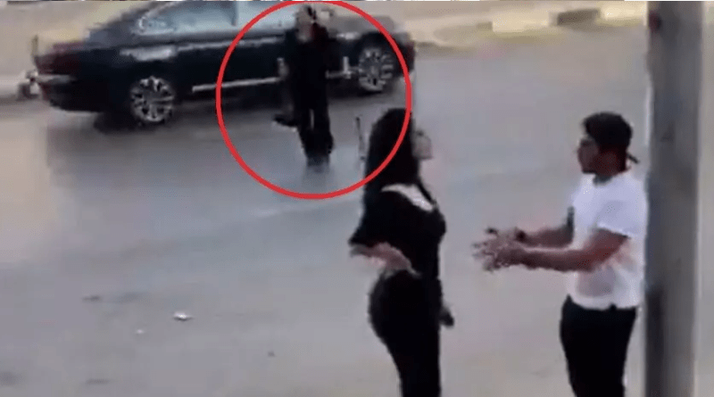 Ένα νεαρό ζευγάρι τσακώνεται για κάποιο ερωτικό θέμα στο πεζοδρόμιο. Όμως δεν είναι οι μόνοι πρωταγωνιστές του viral βίντεο.