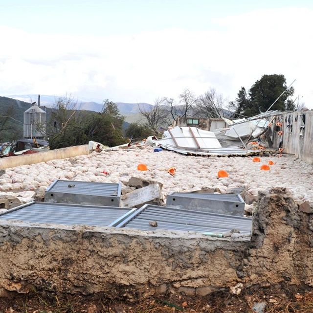Ο ανεμοστρόβιλος χτύπησε την πτηνοτροφική μονάδα περί τις 20:00 την Τετάρτη (7/1), σύμφωνα με την κυρία Μάστορα. «20:30 ήμασταν εδώ, ήταν καταστροφή», ανέφερε.