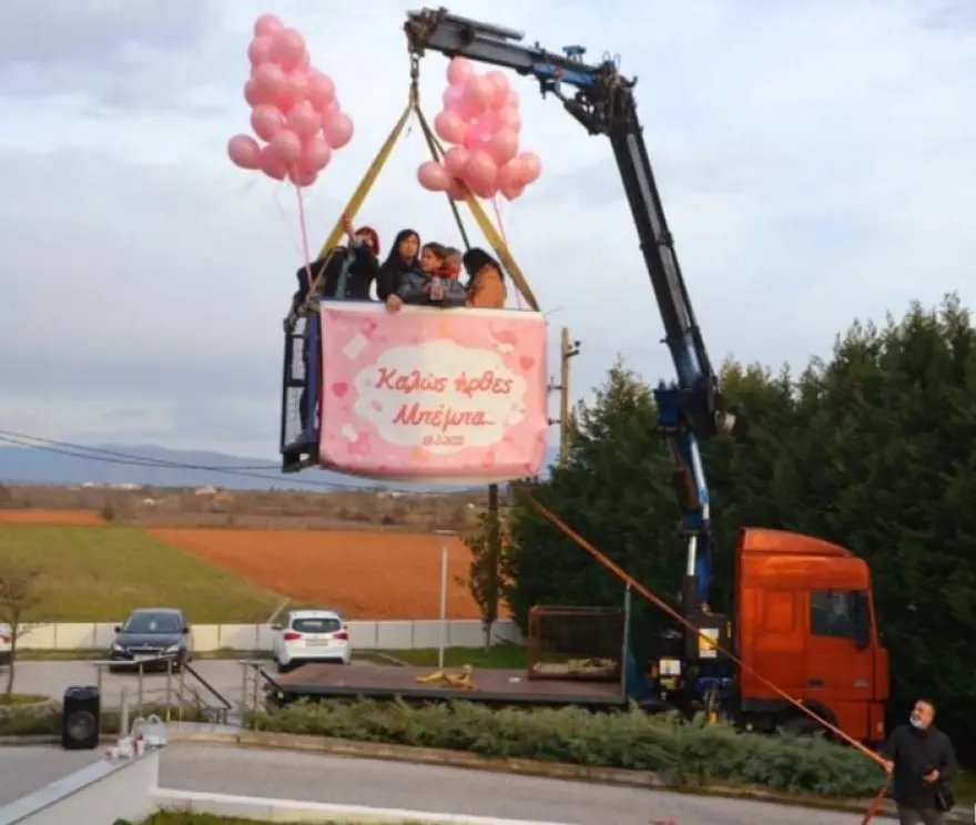 Μάλιστα, χειριστής του γερανού που πραγματοποίησε το πρωτότυπο επισκεπτήριο στον αέρα, ήταν ο παππούς της νεογέννητης μπέμπας.
