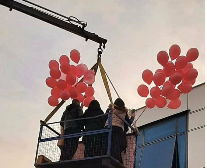 «Έπρεπε να πάμε τουλάχιστον απ’ έξω. Σκέφτηκα, λοιπόν, ότι θέλω έναν γερανό και τον βρήκα. Επιπλέον πήραμε ό,τι ταιριάζει στην περίσταση: Μπαλόνια, ντουντούκες, καπνογόνα και πανό και ανοίξαμε μέχρι και σαμπάνιες», λέει χαρακτηριστικά.