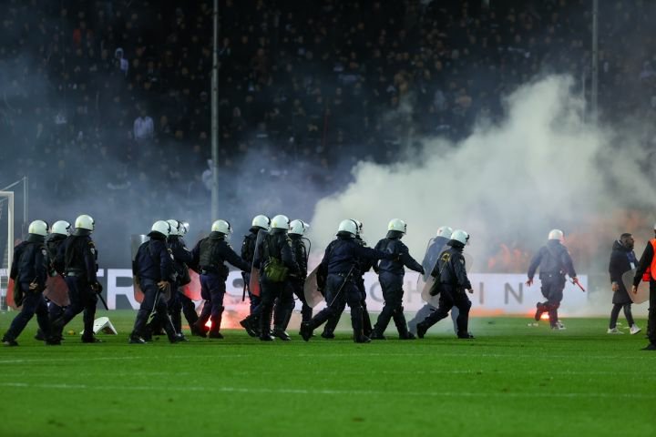 Οπαδοί του ΠΑΟΚ από την Θύρα 4 μπήκαν στον αγωνιστικό χώρο την ώρα που το ντέρμπι με τον Άρη ήταν στο δεύτερο λεπτό των καθυστερήσεων, με τον διαιτητή να το διακόπτει και τους παίκτες να φεύγουν για τα αποδυτήρια.