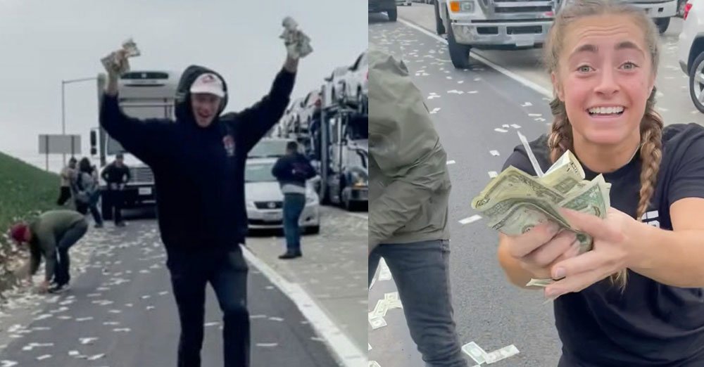 Βίντεο που αναρτήθηκαν σε μέσα κοινωνικής δικτύωσης δείχνουν οδηγούς να σταματούν τα οχήματά τους στη μέση του δρόμου και στη λωρίδα έκτακτης ανάγκης και να κατεβαίνουν τρέχοντας να μαζέψουν με τις χούφτες δολάρια. Κάποιοι τα πετάγαν στον αέρα σαν κομφετί.