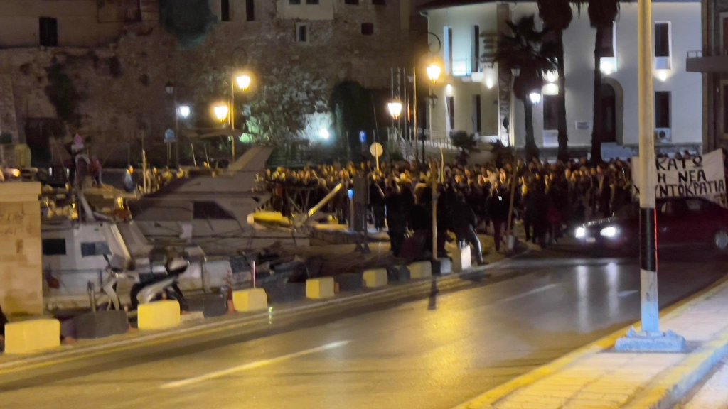 Με μεγάλη συμμετοχή πραγματοποιήθηκε το βράδυ της Κυριακής στο Ηράκλειο διαμαρτυρία πολιτών που αντιδρούν στον υποχρεωτικό εμβολιασμό κατά του κορωνοϊού.