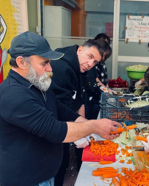 Ειδικότερα ο Γιώργος Μαζωνάκης, βρέθηκε στον Κεραμεικό μαζί με τους εθελοντές της Κοινωνικής Κουζίνας «Ο άλλος άνθρωπος» ετοιμάζοντας σαλάτες και φαγητό για τους συμπολίτες μας.