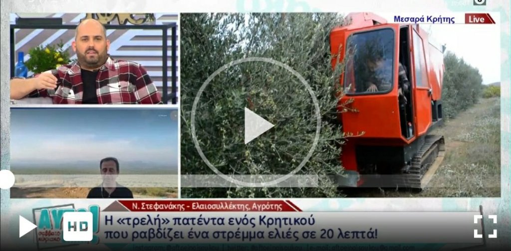 Ο ελαιοσυλλέκτης Ν. Στεφανάκης μίλησε για το μηχάνημα που έχει φτιάξει μόνος του και μπορεί να μαζεύει 6-7 τόνους καρπού την ώρα.
