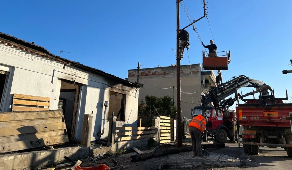 Από νωρίς το πρωί, συνεργεία της ΔΕΔΔΗΕ είναι στο σημείο, καθώς από την πυρκαγιά σημειώθηκε διακοπή στην ηλεκτροδότηση. Τοποθετούν νέα κολώνα ηλεκτροδότησης διότι αυτή που βρισκόταν έξω από το σπίτι κάηκε.