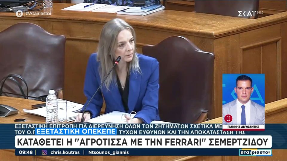 Νωρίτερα, ιδιοκτήτρια ενός μοτοποδηλάτου μικρού κυβισμού δήλωσε η κυρία Καλλιόπη Σεμερτζίδου, πρόσωπο που απασχόλησε τις ελεγκτικές αρχές για την εμπλοκή της στην υπόθεση του ΟΠΕΚΕΠΕ λόγω αναρτήσεων στα social media που την εμφανίζουν να οδηγεί πολυτελή super cars.