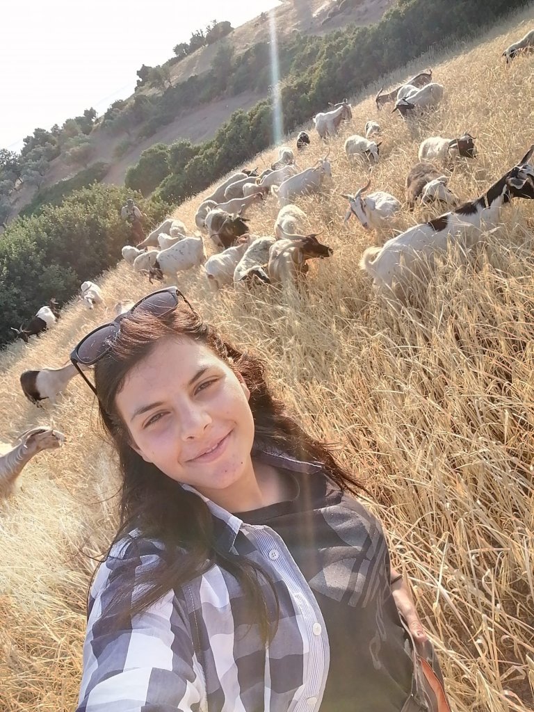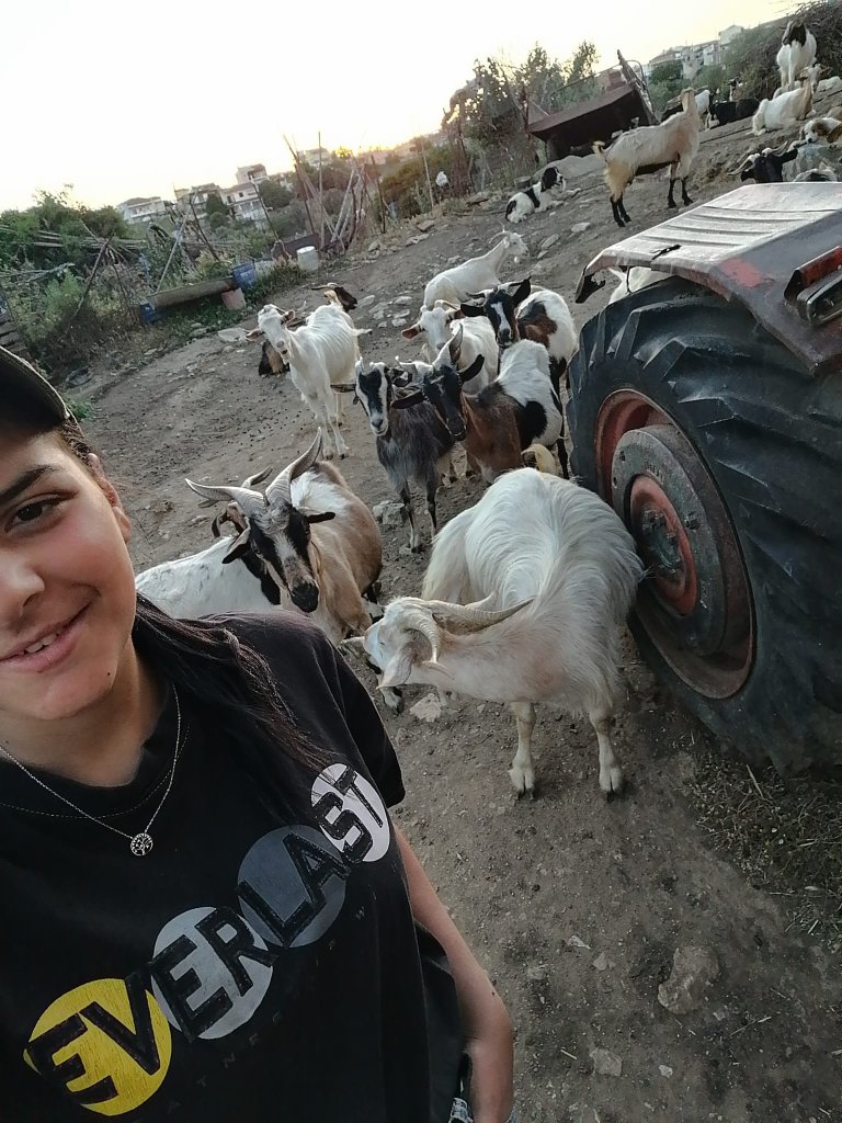 «Ξυπνάω 5:40 με 06:00 το πρωί, μερικές φορές πάω στον στάβλο μονή μου και άλλες φορές έρχεται και πατέρας μου. Φτιάχνω τις τροφές για τα γίδια και τα πρόβατα και μετά ταΐζω τα κουνέλια, τις κότες και τα σκυλιά του κοπαδιού μου. Την εποχή που γεννούν τα ζώα οι διαδικασίες είναι περισσότερες καθώς μερικές γίδες και προβάτες κάνουν από 3 μικρά που δεν μπορούν να τα μεγαλώσουν και έτσι τα παίρνω εγώ και τα μεγαλώνω με το μπουκάλι. Στη συνέχεια βάζω κλαρί από ελιές στις γίδες, τον καρπό τους και νερό και μετά πηγαίνω δίπλα στα πρόβατα, τα ανοίγω να βγουν έξω και τους βάζω καρπό και μια μπάλα σανό. Αργότερα έρχεται ο πατέρας μου, καθαρίζει το μέρος που κοιμούνται ώστε όταν γυρίσουν από τη βοσκή να το βρουν καθαρό. Μέχρι να πάει η ώρα να βγουν τα ζώα έξω για την καθημερινή τους βοσκή πηγαίνω ως το πηγάδι που περνούν, τους αλλάζω το νερό και τους ρίχνω καθαρό. Μαζί μου για τη βόλτα έρχονται και τα 3 από τα πολλά σκυλάκια που έχω. Μετά επιστρέφω στο σπίτι, φτιάχνω τον καφέ μου και το γεύμα που θα πάρω μαζί και φυσικά θα έχω λίγο ψωμί για να ρίχνω στα σκυλιά μου την ώρα της βοσκής για να μένουν εκεί κοντά και να μην φεύγουν μακριά από το κοπάδι.»