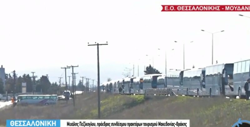 Μηχανοκίνητη πορεία διαμαρτυρίας πραγματοποιούν αυτή την ώρα στη Θεσσαλονίκη, τουριστικοί πράκτορες από περιοχές της Βορείου Ελλάδος. Όπως είχε γράψει το TyposThes, οι οδηγοί των τουριστικών λεωφορείων παρέταξαν τα οχήματά τους επί της Εθνικής Οδού Θεσσαλονίκης – Μουδανιών, στο ρεύμα με κατεύθυνση προς Θεσσαλονίκη.