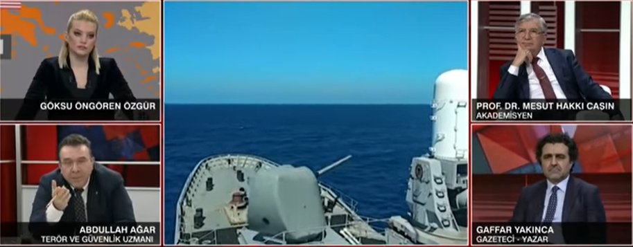 Σε παρόμοιες δηλώσεις προχώρησε και δημοσιογράφος του τηλεοπτικού δικτύου ULKE που ο οποίος έχει σχετικό διάλογο με αναλυτή για τις «παραβιάσεις» της Ελλάδας στο Αιγαίο. Η τουρκική προπαγάνδα στο αντίστοιχο βίντεο περνάει σε άλλο επίπεδο έχοντας αλλάξει ονομασίες στα ελληνικά νησιά, στο γράφημα που παρουσιάζεται.