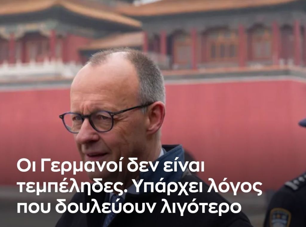 Ο καγκελάριος της Γερμανίας, Φρίντριχ Μερτς (Friedrich Merz) φαίνεται πως πήρε τουλάχιστον ένα σημαντικό μάθημα από την πρόσφατη επίσκεψή του στην Κίνα: Πιστεύει ότι οι Γερμανοί δεν εργάζονται αρκετά. Ίσως, κατά την άποψή του, αυτό συμβαίνει επειδή οι εργαζόμενοι δεν έχουν τα κατάλληλα οικονομικά κίνητρα.