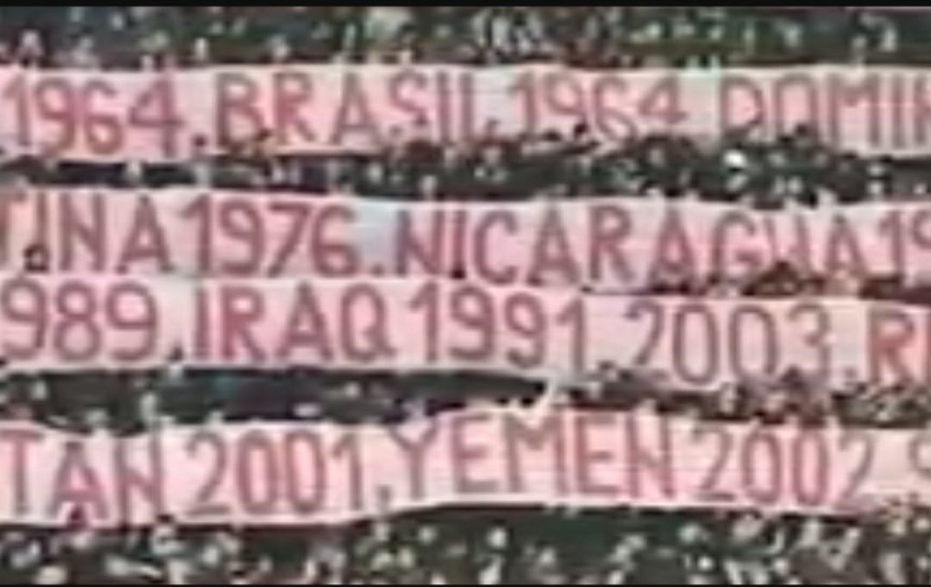 Επιπλέον, οι οπαδοί έγραψαν τις χώρες όπου έχουν εισβάλει οι Ηνωμένες Πολιτείες τα τελευταία 72 χρόνια.
