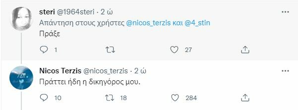 Μάλιστα, σε ένα σχόλιο, ότι ο Σάκης Ρουβάς έχει κάνει ήδη τα κουμάντα του, ο Νίκος Τερζής απάντησε: «Δεν με ενδιαφέρει τι κάνει εκείνος. Με ενδιαφέρει η δική μου στάση».