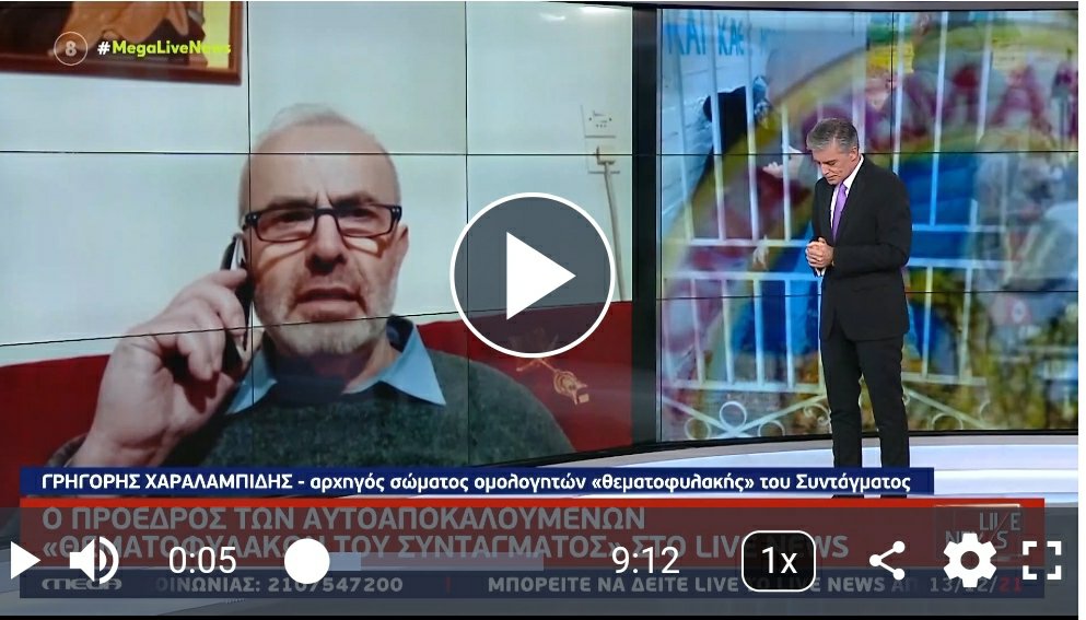 «Δεν είμαι ο αρχηγός όλων αυτών που λέγονται Θεματοφύλακες. Έχω δημιουργήσει ως πρόεδρος του Ανωτάτου Νομοθετικού, Εκτελεστικού και Δικαστικού Συμβουλίου του Έθνους των Ελλήνων, το Σώμα Ομολογητών Θεματοφυλακής του Συντάγματος, το οποίο αποτελείται από άτομα τα οποία δεν προβαίνουν σε καταδρομικές ενέργειες. Δεν έχουν καμία σχέση οι κατηγορούμενοι αυτοί με το Σώμα Ομολογητών», είπε μιλώντας στο MEGA και τον Νίκο Ευαγγελάτο, ο Γρήγορης Χαραλαμπίδης, αρχηγός σώματος ομολογητών «θεματοφυλακής» του Συντάγματος.