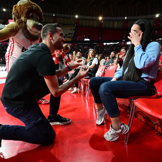 Τον αγώνα του Ολυμπιακού με τον Άρη στο ΣΕΦ για την Stoiximan Basket League επέλεξε ο Παντελής για να κάνει πρόταση γάμου στην αγαπημένη του Ολυμπία.