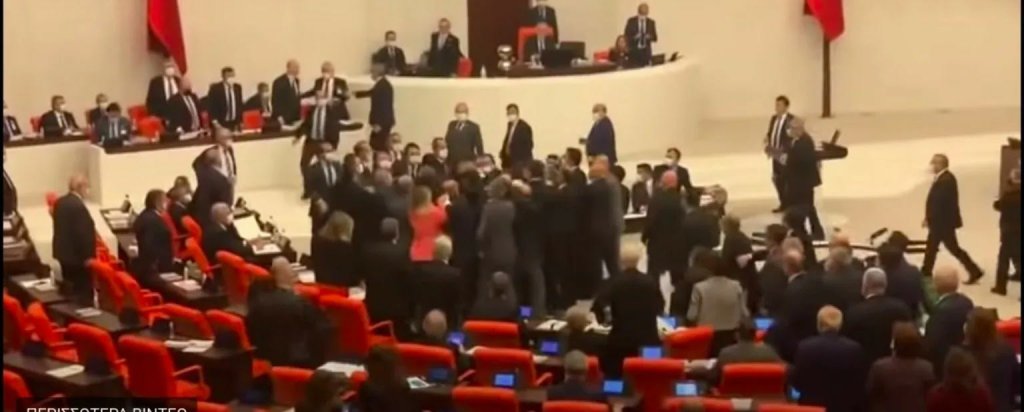 Στα χέρια πιάστηκαν βουλευτές του Κόμματος Δικαιοσύνης και Ανάπτυξης (AKP) και του Ρεπουμπλικανικού Λαϊκού Κόμματος (CHP) στη Βουλή. ΔΕΙΤΕ ΤΟ ΒΙΝΤΕΟ