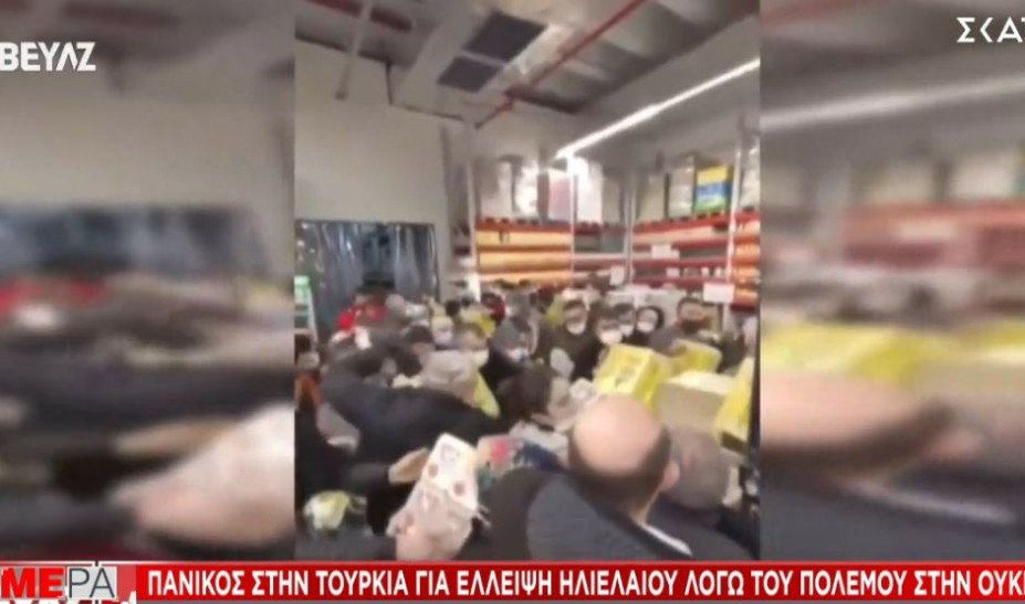 Συνωστισμός σημειώθηκε σε μεγάλα σούπερ μάρκετ της Κωνσταντινούπολης, μετά τη φήμη ότι θα υπάρξουν σημαντικές ελλείψεις, ενώ παράλληλα η τιμή του ηλιελαίου έχει αυξηθεί.
