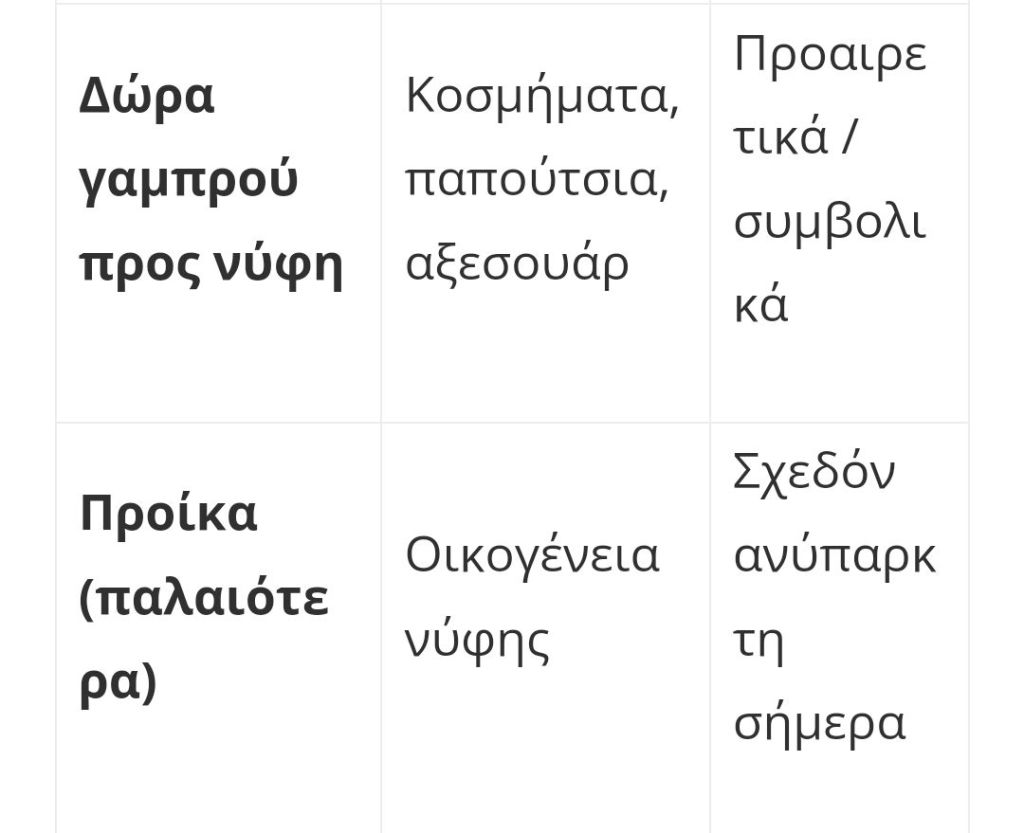 - Προίκα (παλαιότερα, σήμερα σπανιότερα)