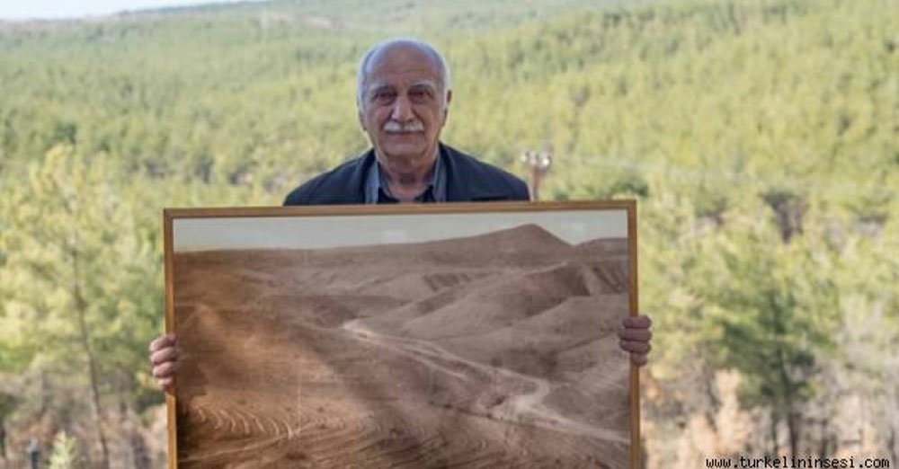 Μια φωτογραφία του όπου κρατά ψηλά ένα κάδρο όπου βλέπουμε το πριν και μετά της περιοχής που βοήθησε να μεταμορφωθεί έγιναν πρόσφατα viral στην Τουρκία, καθώς δείχνει πόσο μεγάλη διαφορά έχει κάνει το έργο του σε μια χώρα όπου η αποψίλωση των δασών και η ερημοποίηση είναι τεράστιο πρόβλημα.