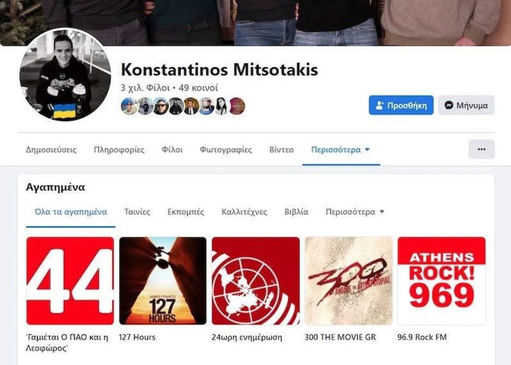Ουδέν πρόβλημα προκύπτει φυσικά από το γεγονός ότι ο γιος του Κυριάκου Μητσοτάκη δηλώνει ανοικτά την προτίμηση του στους «ερυθρόλευκους». Άλλωστε στην κεντρική του φωτογραφία εμφανίζεται με τη μπλούζα του Ολυμπιακού, άρα δεν προκύπτει και διάθεση να κρύψει τα αισθήματα του και γιατί να το πράξει εξάλλου.