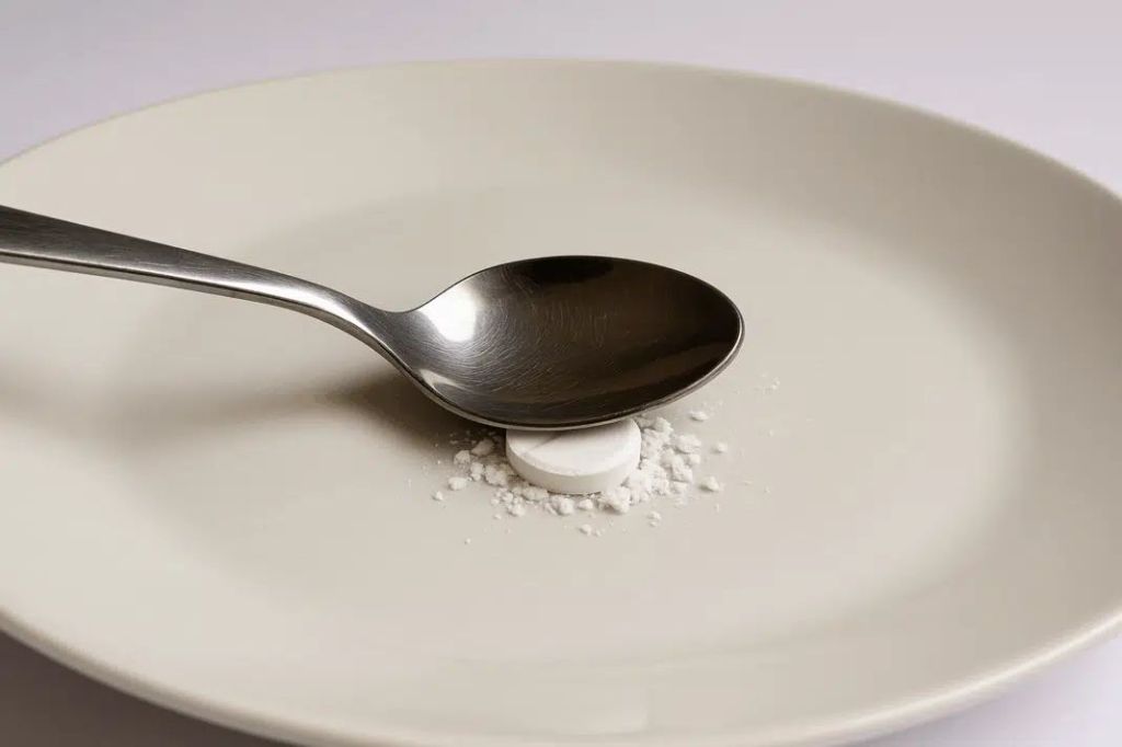 - Λιώστε ένα δισκίο και αναμείξτε το με λίγες σταγόνες νερό.