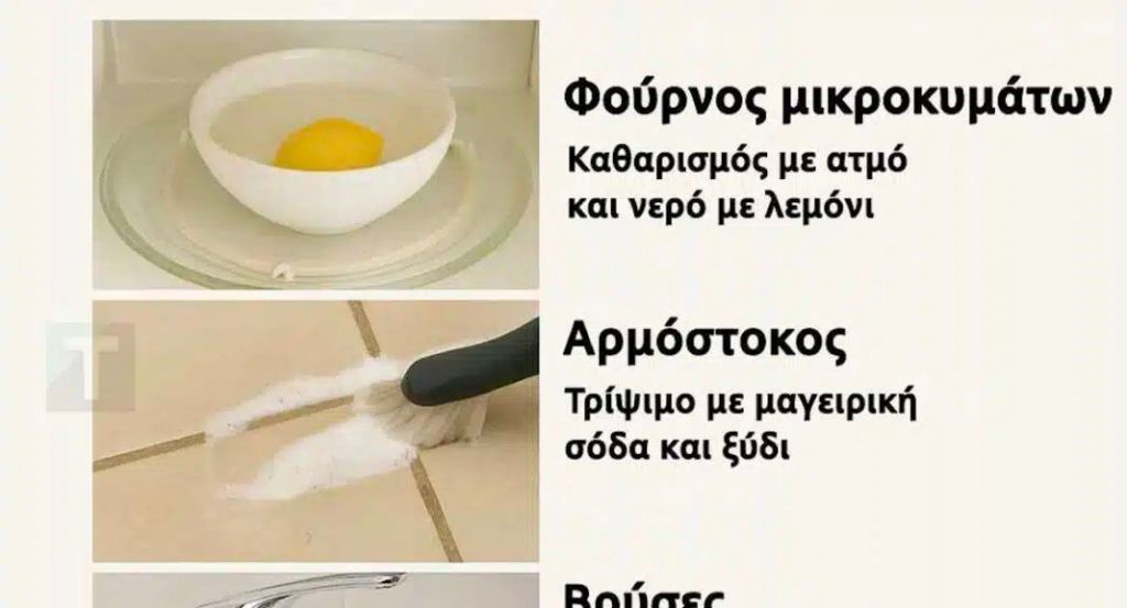 Οι φούρνοι μικροκυμάτων μπορούν γρήγορα να γίνουν βρώμικοι με πιτσιλίσματα και οσμές φαγητού. Για να τους καθαρίσετε εύκολα, γεμίστε ένα μπολ κατάλληλο για φούρνο μικροκυμάτων με νερό και προσθέστε το χυμό ενός λεμονιού. Ζεστάνετε στον φούρνο μικροκυμάτων σε υψηλή ισχύ για περίπου πέντε λεπτά, επιτρέποντας στον ατμό να διαλύσει τη βρωμιά και να εξουδετερώσει τις οσμές. Στη συνέχεια, απλώς σκουπίστε το εσωτερικό με ένα υγρό πανί. Το λεμόνι όχι μόνο καθαρίζει, αλλά αφήνει και ένα φρέσκο άρωμα.