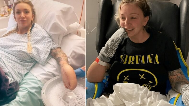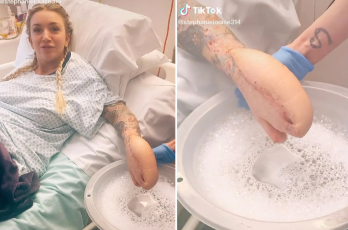 Σύμφωνα με πληροφορίες από healthstories.gr, ο λόγος που το χέρι της έχει αυτή τη μορφή είναι επειδή οι γιατροί το έραψαν μέσα στο στομάχι της για να καταπολεμήσουν μια επιθετική μόλυνση.