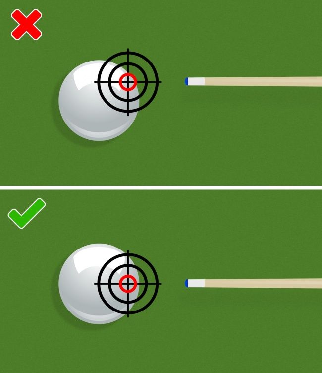 Χτυπήστε σωστά. Εάν η μπάλα σας χάσει την τροχιά που σχεδιάσατε, σημαίνει ότι δεν χτυπήσατε το κέντρο της μπάλας. Βάλτε την στέκα έτσι ώστε να ευθυγραμμιστεί απόλυτα με το σημείο που θέλετε να χτυπήσετε. Εάν είστε δεξιόχειρες, βάλτε το δεξιό σας πόδι κάθετα στη γραμμή και βάλτε το αριστερό σας πόδι προς τα εμπρός. Ο ώμος, ο γοφός, ο αγκώνας και το πηγούνι θα πρέπει να βρίσκονται στο ίδιο επίπεδο.